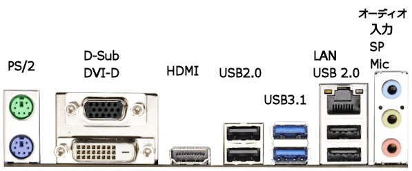 1 x PS/2 マウス ポート 2 x USB3.1 Gen1 ポート(SATA3と排他なので使用しない) |