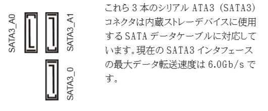 - 下記画像の SATA3_A0 と SATA_A1 は背面のパネルにある USB3.0 と排他使用になっているため、内臓SSDやHDDをこの端子に接続する時は、USB3.0の使用はできません