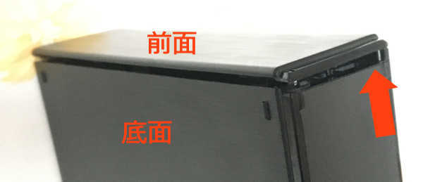 - 前面の下側の隙間が2mmぐらい開くように広げます