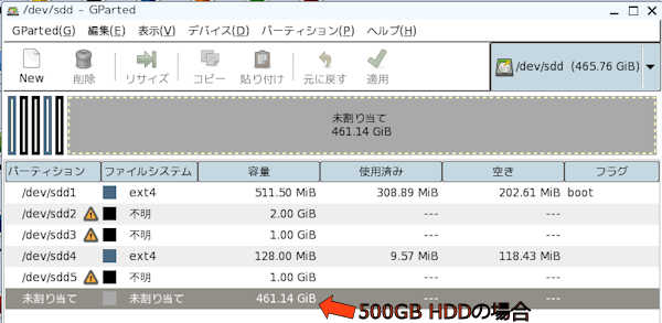 6番目はHDDの容量で増減します - ついでにLinuxのGpartedでも確認してみました