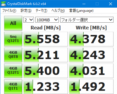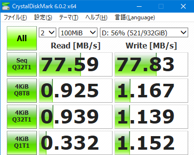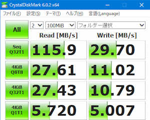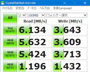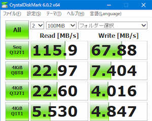読み込み 約97MB/s 書き込み 約73MB/s |