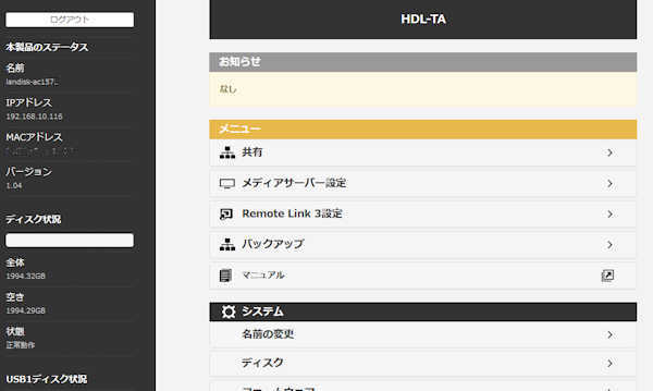 しかしデスクトップパソコンは図体が大きいので、ノートパソコンに変更しましたが、さらに小型で省エネタイプの手頃なものを探していました - 2020年2月に、LANDISK HDL-TA1 を見つけ現在に至っています