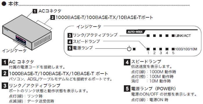 - 1,000BASE-T 対応、5ポート、消費電力 最大 5.5W