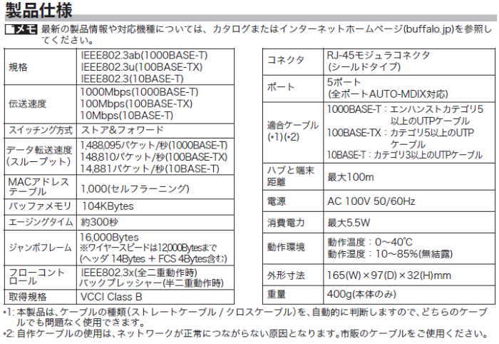 Buffalo LSW3-GT-5NS スイッチングハブ ホームページ
