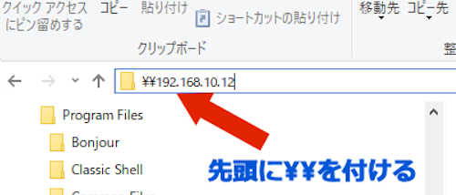 先頭に ¥¥ を付け[IPアドレス]の値を入力します