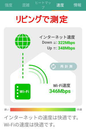 - リビング内では、100%出力と比較し50~80%の速度となりました