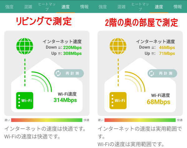- 測定に使用したアプリは、IO DATA の Wi-Fiミレル です