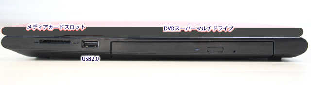 マルチカードスロット、USB2.0、DVDマルチドライブ