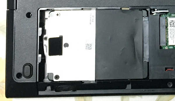 2.5インチ SATA3.0用(600MB/s対応) 厚さ9.5mm 取り付け可 (現在は、サムスン SSD 840 PRO 128GB) |