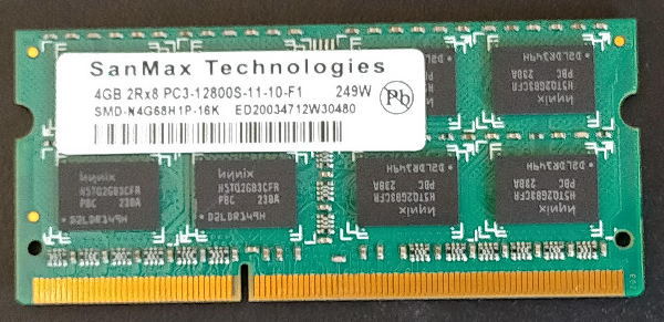 現在のメモリは、SanMax製 PC3-12800 SMD-N4G68H1P-16K。
