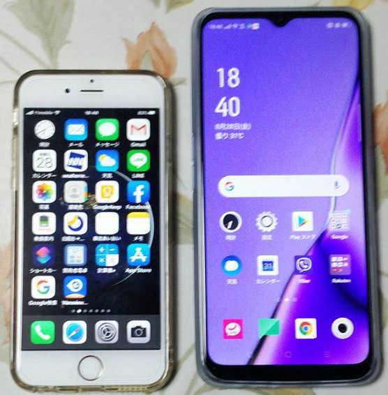 - OPPO A5 2020 と iPhone 6S の画面の大きさを比べると2回りぐらい大きくなります(4.7インチ → 6.5インチ)