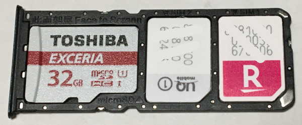 左から、microSD、UQ mobileの nanoSIM、Rakuten