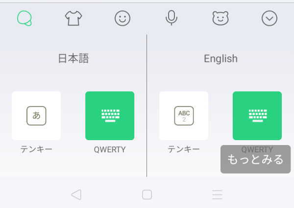 - 右下の「もっと見る」をタップし、使いたいキー配置のキーボードを選びます