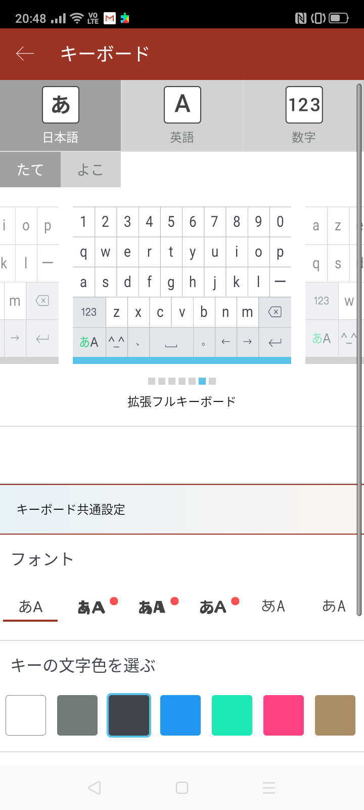 - [あ]、[A]、[123]を順にタップし、キーボードのレイアウトを選択。