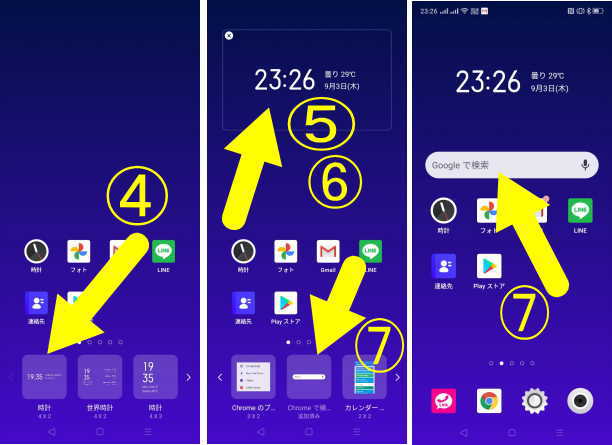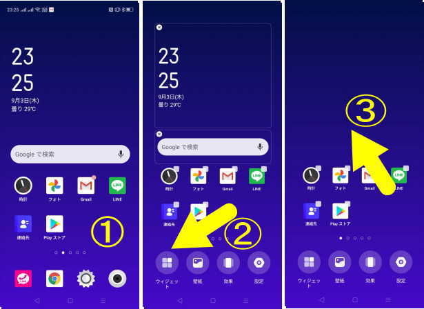 - ウィジェット上を長押しすると、枠線が表示され移動や大きさの調整ができます