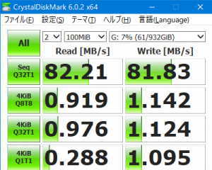 使用したアプリは、CrystalDiskMark (64bit) Ver6.0.2です