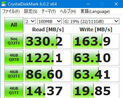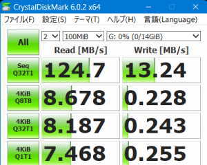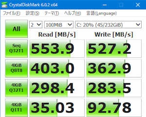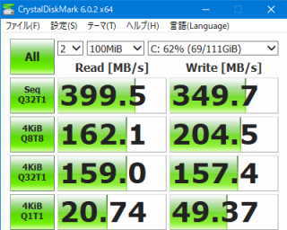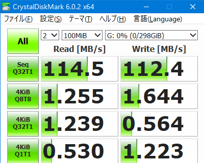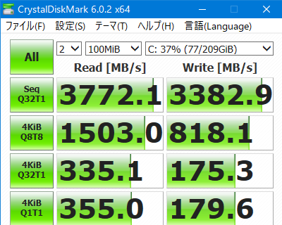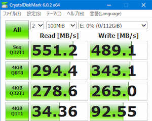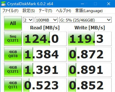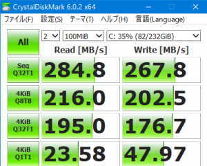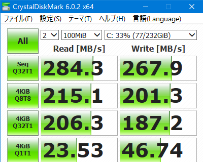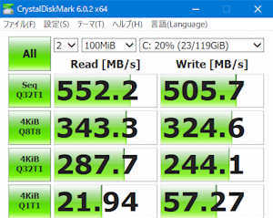 CrystalDiskMark Ver6.0.2(64Bit)を使用して測定