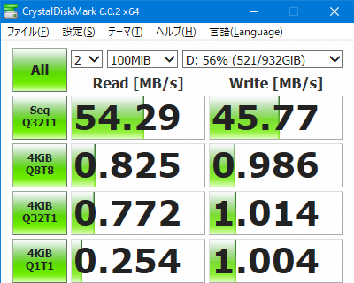 読み込み・書き込み共にかなり速度低下が発生しました。