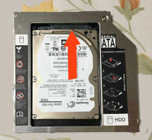 - ノート用 DVDドライブに取り付けた HDD 変換マウンタ