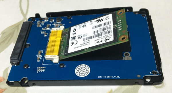 mSATAのSSDを 2.5インチSATAに 変換するアダプタを使用することによる速度低下を測定してみました。