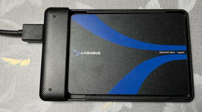 HDDを 外付けUSB3.0変換アダプタに取り付けて測定