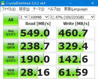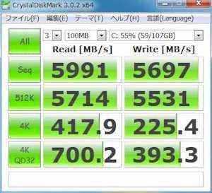 USB3.0 変換ユニットに取り付けて測定しているので、パソコン内部に直接取り付けると条件により異なりますが、約1.1~1.6倍ぐらい早くなるので、ここのデータは比較の参考です。
