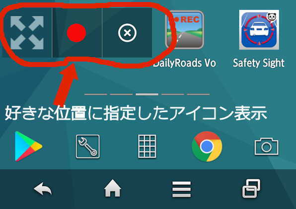 裏で動作中は好きな位置に指定した操作アイコンを表示できるので便利です