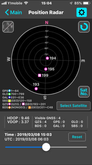 左はすべてのGPS、右はQZSS(みちびき)の表示です。