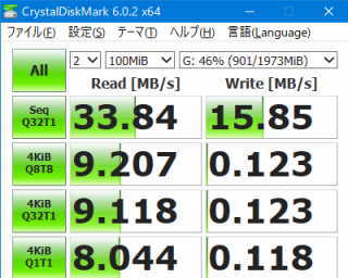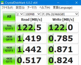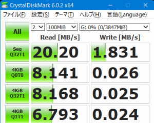 使用したアプリは、CrystalDiskMark (64bit) Ver6.0.2
