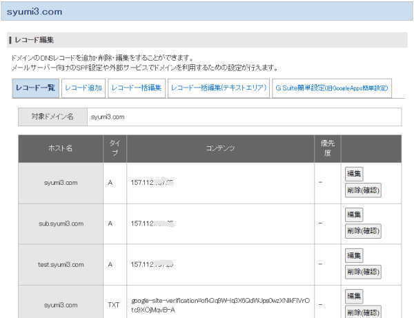 - 一覧の syumi3.com A 157.112.999.99 をメモしておく