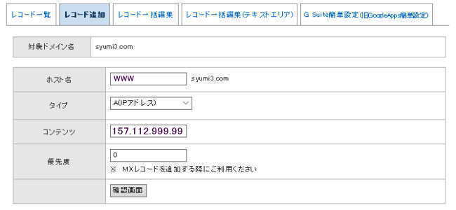 - DNSレコードに「www.syumi3.com」があるか確認