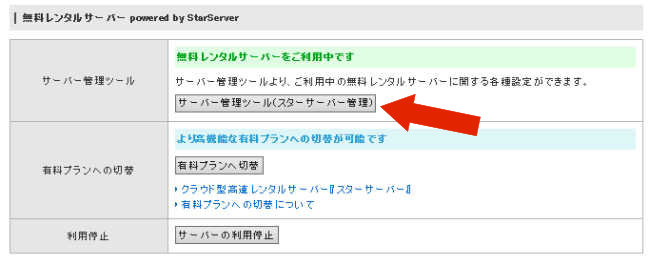 矢印の「サーバー管理ツール(スターサーバー管理)」をクリックします。