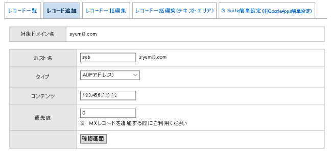 sub はどのような単語でも良い - サブドメイン が 使えるように設定する「DNSレコード編集」
