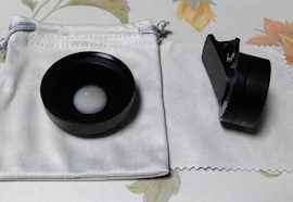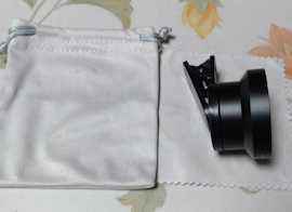 | 同梱品です。 スマホへの取り付けクリップと保護キャップ 組み合わせたレンズと保護キャップ レンズクロスと収納ポーチ |
