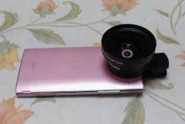 通常よりも広い範囲を撮影できる 広角撮影をする時は、 マクロレンズをクリップに取付け さらに広角レンズを取り付けます。 |