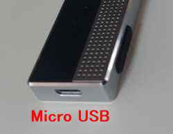 MicroUSB 端子と、 ステレオイヤホン端子があります。 USB 端子は充電やパソコンとの接続に使います。 ![]() |