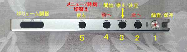 - 録音開始が簡単で、ボタンを見なくても2秒間プッシュで簡単スタートできる。