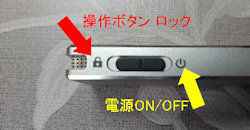 電源ON-黄色側に2秒間 電源OFF-黄色側に3秒間 ボタンロック- |