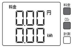 計測している機器のプラグを差し込み口から抜き、料金ボタンとCO2ボタンを同時に3秒以上押し続けると、積算電力量(kWh)、積算時間(Hour)、料金(円)、CO2量(kg-CO2)が0になります。