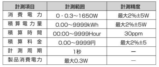 100Vの15Aまで測定可能ですが、瞬間的に大きな電流が流れるような電化製品、例えばエアコンのような物の測定はできません。