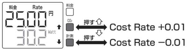 料金ボタンを3秒以上を押し続けると料金値(Rate)が点滅します。