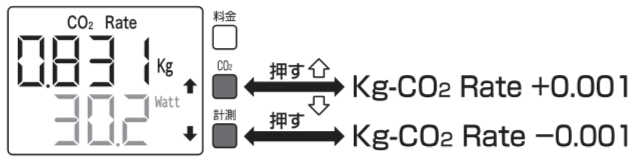 CO2ボタンを3秒以上押し続けるとCO2換算値(Rate)が点滅します。
