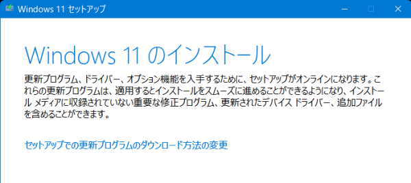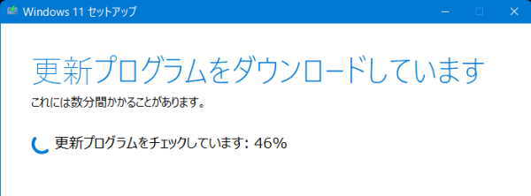 - Windows11 のインストールが始まり、更新プログラムのチェック