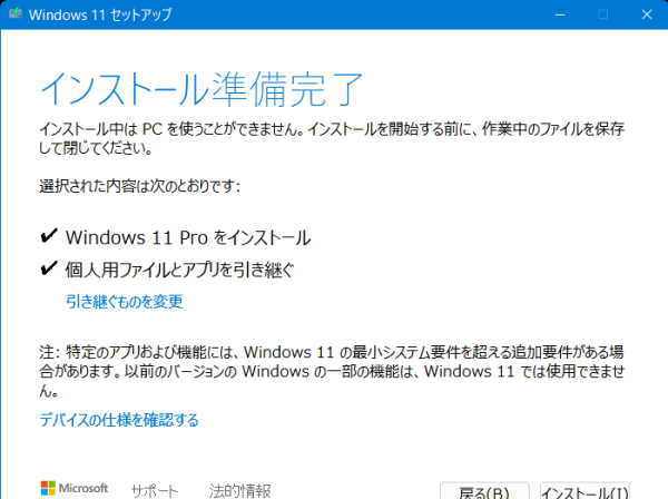 小さなバージョンアップは自動で実行されました - 規格外のPCにWindows11を インストールした後、