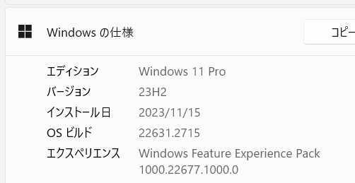 下記画像は、無事 バージョン 23H2 にアップデートされています