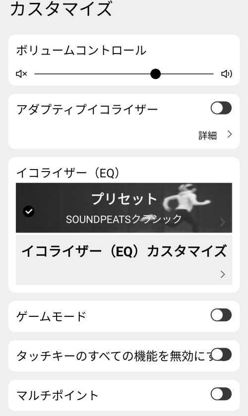 「SoundPEATS」をインストールすると、色々便利な機能を使えるようになります
