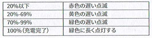 Type-C のUSBケーブルを差し込み充電を開始すると、LEDが点滅します。
