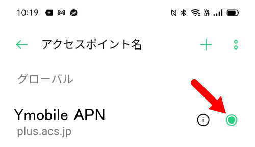 項目名 入力データ 名前 Ymobile APN APN plus.acs.jp ユーザー名 ym パスワード ym MCC 440 MNC 20 認証タイプ CHAP MMSC http://mms-s MMSプロキシ andmms.plusacs.ne.jp MMSポート 8080 APNタイプ default,mms,supl,hipri - 入力完了後は右上の「レ」や「保存」をタップします