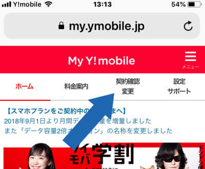 - My Y!mobile の ホームページ に ログインします