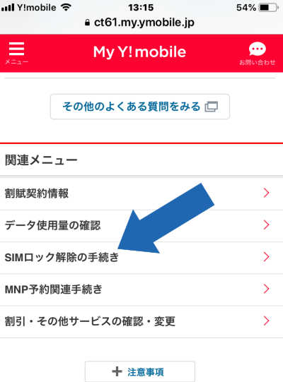 - 前半の作業である「My Y!mobile」のホームページでの設定でSIMロックの解除を受け付けた状態になります